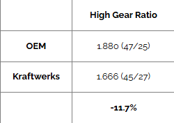 - Gear Addder : Features 11.7% less gear reduction in HIGH gear compared to stock, providing smoother power delivery and improved performance.