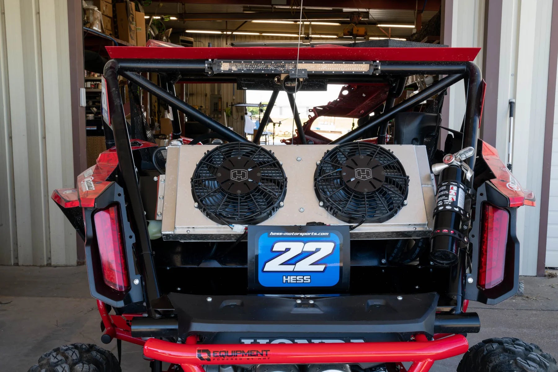 Honda Talon Hess Motorsports Rear Mounted Radiator Relocation Kit. A very common problem for any UTV enthusiast is over heating due to the stock mounting location of the radiator. The stock radiator is mounted up front which leaves it very vulnerable to damage and mud clogging. We have relocated the radiator to the rear, increased coolant capacity, and incorporated dual fans! This is the ultimate setup for the driver that demands performance from their UTV!